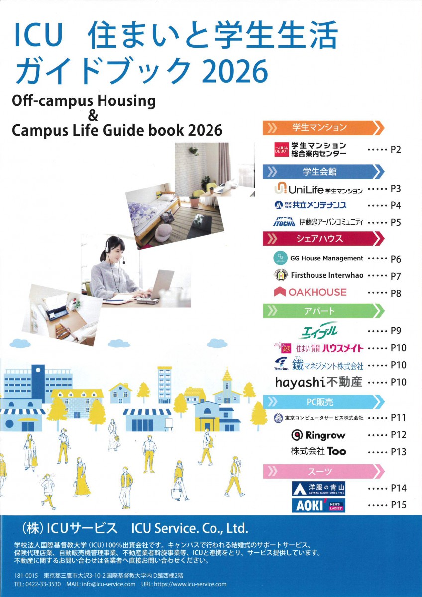 ICU Service Co., Ltd. has made arrangements with several Real Estate Agencies for your off-campus housing needs. We have identified several types of housing for you. Some offer special benefits, so please make sure you identify yourself that you are a current or a future ICU student (or faculty members).